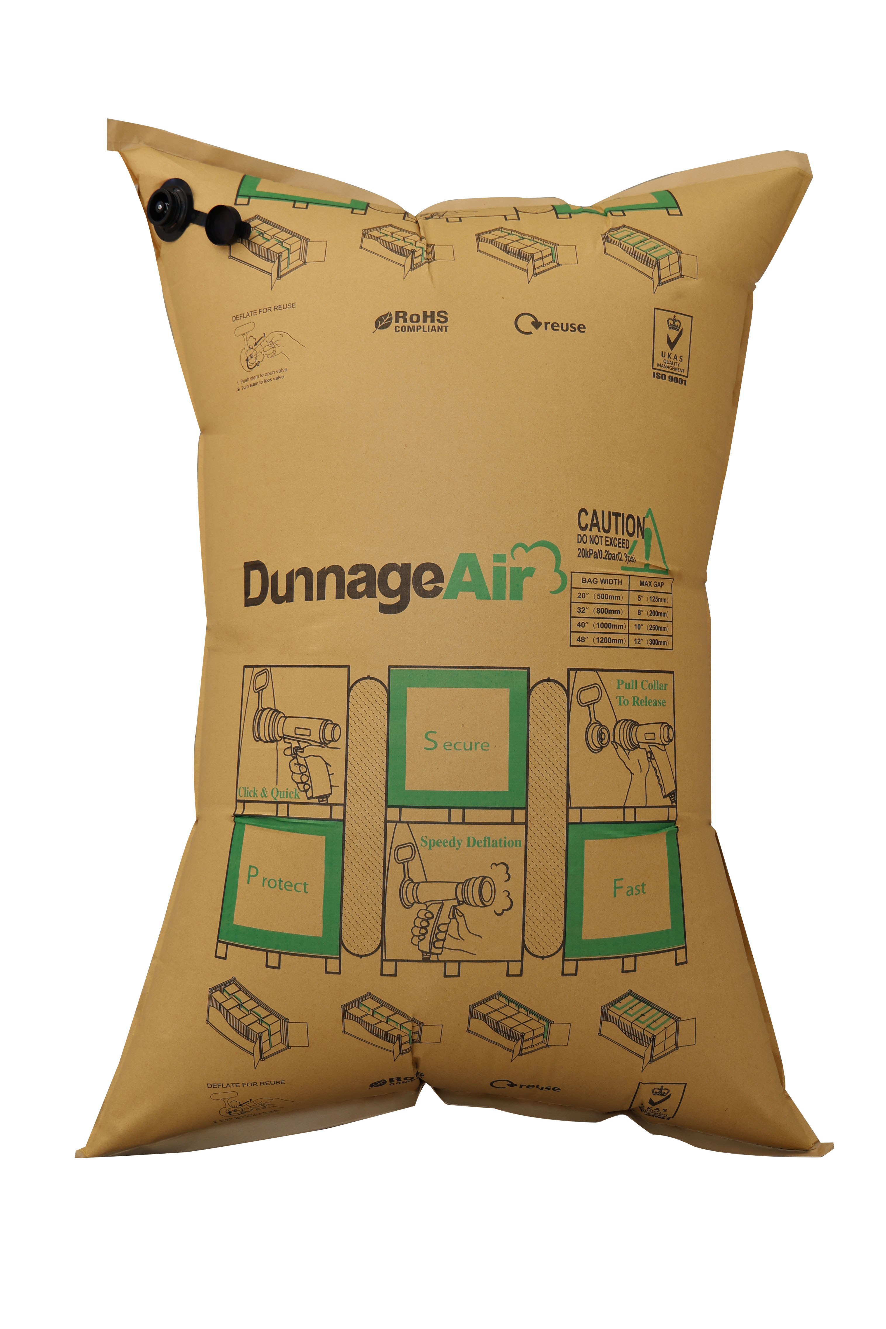 Túi khí vỏ kraft được bơm hơi để lấp đầy khoảng trống giữa các kiện hàng, từ đó: